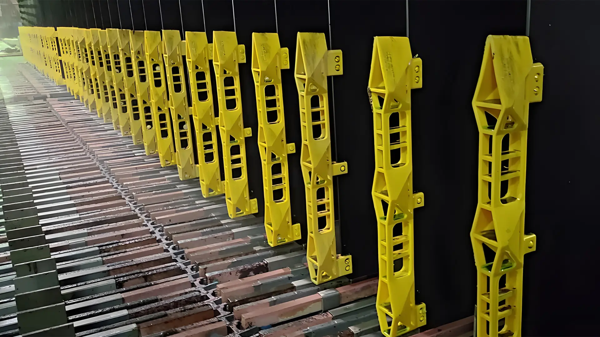 Producto innovador que permite asegurar una separación física equidistante entre ánodos y cátodos cumpliendo la función de enderezador y separador de ánodos, evitando los cortocircuitos y provocando una distribución de corriente en forma homogénea en todos los cátodos logrando el depósito de cobre de manera uniforme.